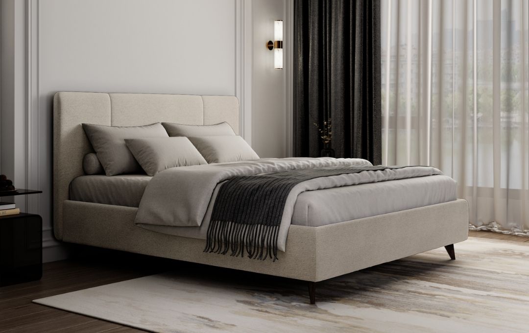 The Dalia Veradea upholstered bed in fabric adds a refined designer touch to your bedroom. Its soft padded headboard features two subtle vertical lines, offering a minimalist and clean look that fits perfectly into both modern and classic interiors.