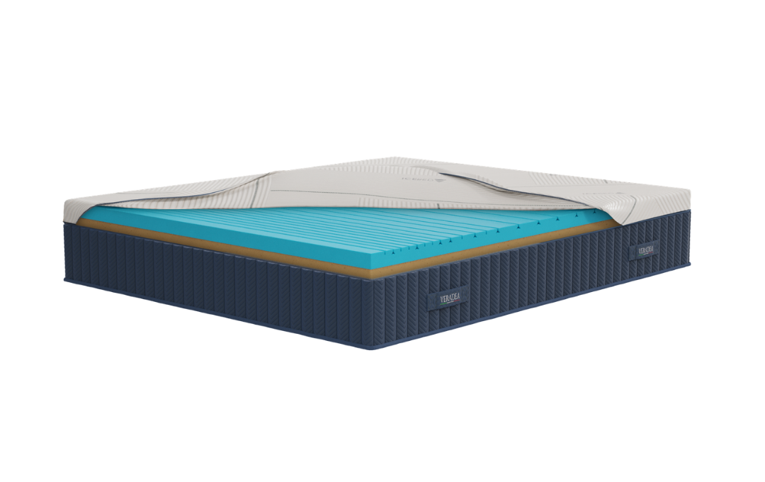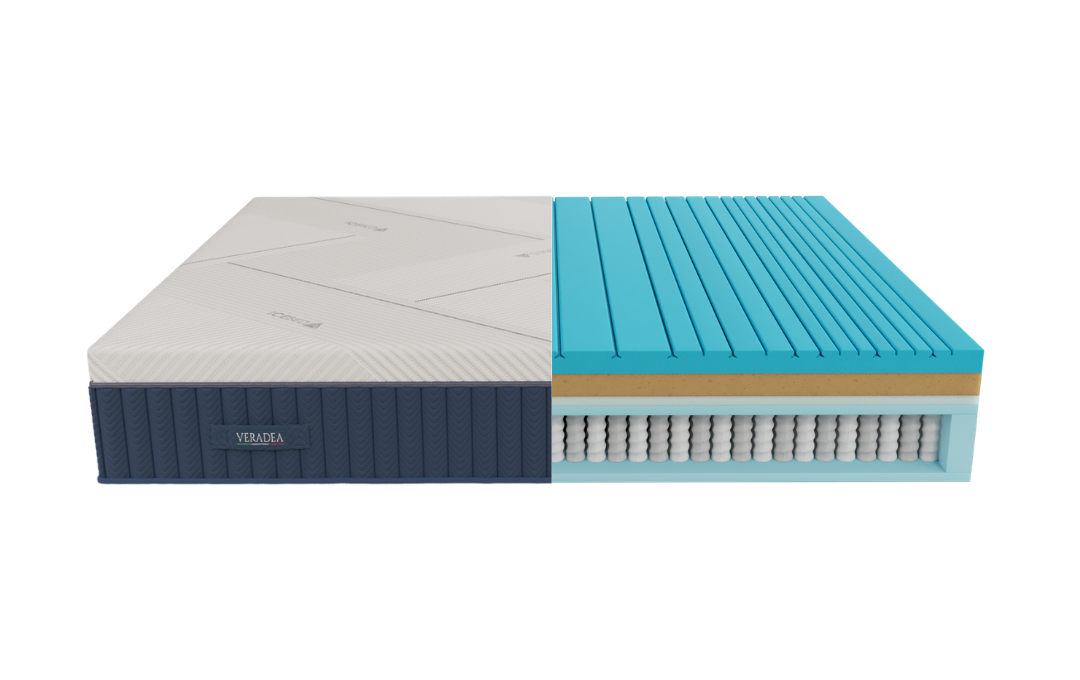 The Veradea Ibrido Ice Mattress is the perfect choice for those seeking gentle, adaptive support with multi-level comfort, combined with exceptional freshness and a welcoming feel. The innovative ice-effect cooling fabric provides a constant cool sensation, while the essential memory foam layer ensures perfectly ergonomic support. Over 1,500 micro pocket springs respond precisely to your every movement, while the surrounding foam layers offer a soft and progressive cushioning. The final foam base layer provides firm support and extra stability.
